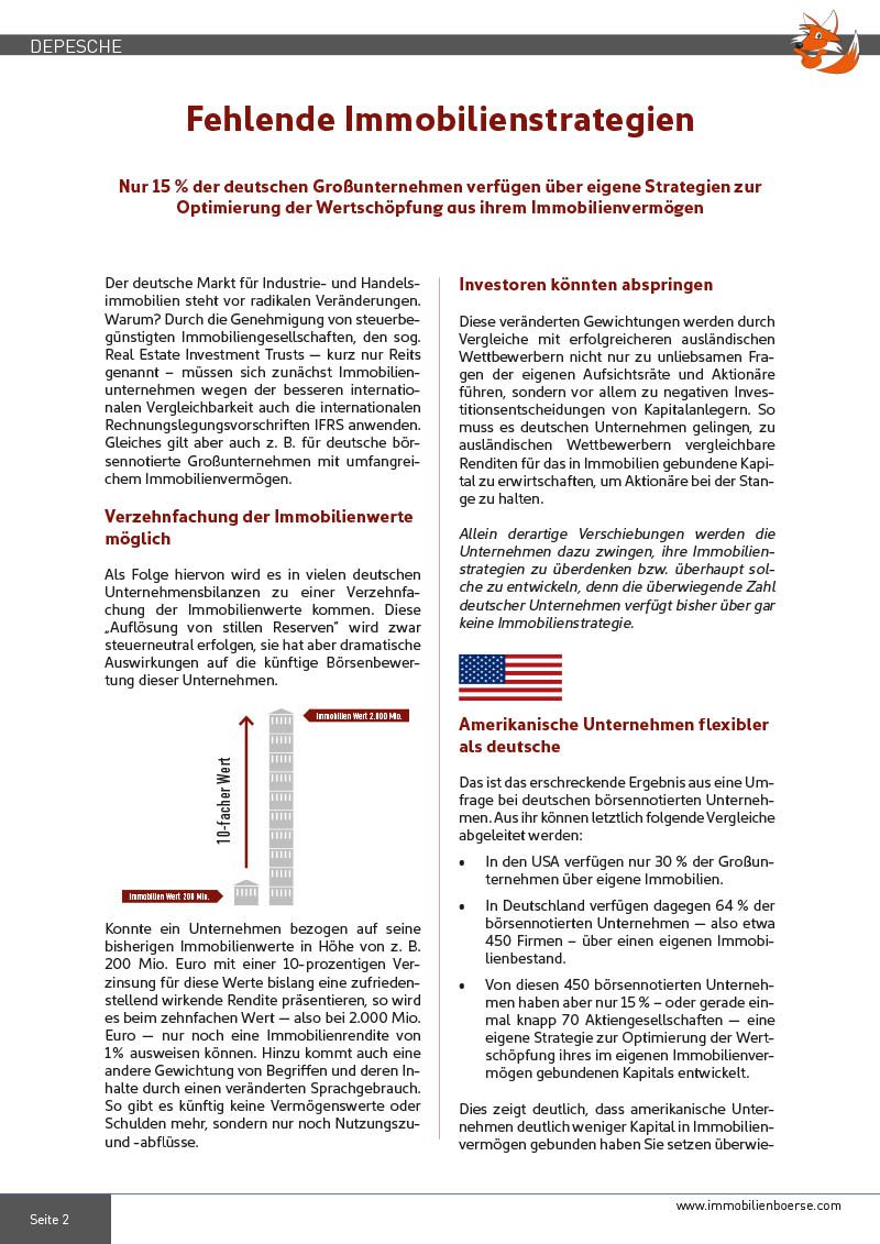 fuchs depescheUm eine Optimierung für das in Immobilien gebundene Kapital zu erreichen, müssen somit für alle Bereiche der betriebsnotwendigen und nicht betriebsnotwendigen Immobilien Strategien erarbeitet werden, die vor allem dem möglichen Wertschöpfungspotenzial dieser Unternehmensbereiche Rechnung tragen, Controlling und Finanzmanagement sind hier in erster Linie gefragt.