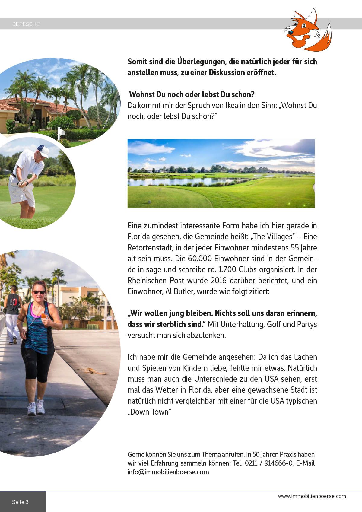 Eine zumindest interessante Form habe ich hier gerade in Florida gesehen, die Gemeinde heißt: „The Villages“ – Eine Retortenstadt, in der jeder Einwohner mindestens 55 Jahre alt sein muss. Die 60.000 Einwohner sind in der Gemeinde in sage und schreibe rd. 1.700 Clubs organisiert. In der Rheinischen Post wurde 2016 darüber berichtet, und ein Einwohner, Al Butler, wurde wie folgt zitiert: